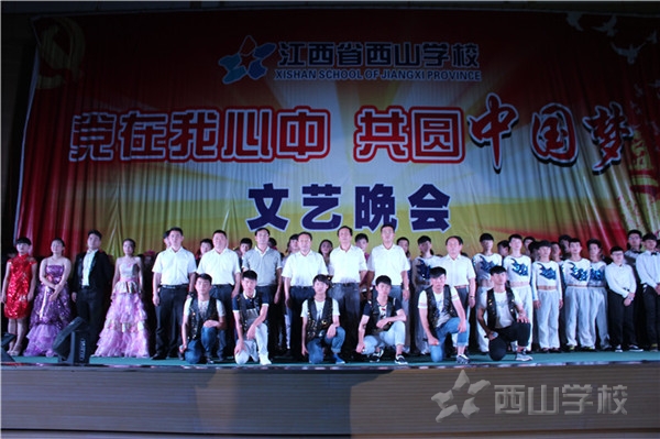 2015年5月25日晚,江西省西山学校高中部“党在我心中、共圆中国梦”大型文艺晚会在体艺馆成功举办,高中部高一、高二年段全体师生共聚一堂,享受了一场别具风味的艺术大餐。