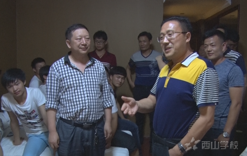 2015年6月6日晚,江西省西山学校校常务班子领导在校长刘在远的带领下前往高三学子下榻的宾馆,看望慰问高三考生,向同学们表达关切之情,预祝他们旗开得胜。