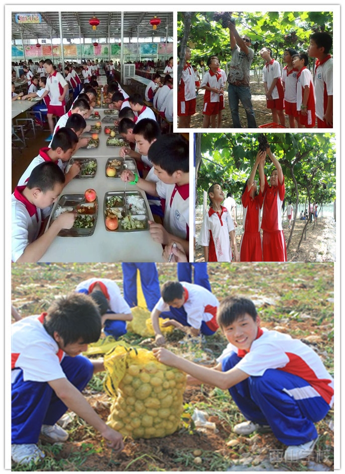 民以食为天,学生也是如此。自家孩子在学校食堂吃得好不好,饭菜是否卫生,家长们很关心。“西山食堂”牢牢把握学生生长发育与各种活动的生理需要量;把握学生的消化吸收生理特点和兴趣口味特点;做到“三个精心”,即精心设计食谱,精心加工制作,精心选用餐具。同时,为了让学生养成文明、良好的就餐行为习惯,学校在就餐中积极贯穿德育教育。在西山学校的食堂,不仅有荤素搭配均匀的各色菜系,还有梨、葡萄等水果放在旁边由师生自主挑选。西山教育集团从2009年开始在学校边上投资创办了以“师生劳动锻炼、休闲观光、绿色生态”为一体的农业园地,农业生态园种植有桔子、水蜜桃、西瓜、梨等水果,开辟了无公害蔬菜基地,养有成群的鸡、鸭、鹅,池塘放养鱼鳖,形成了生态立体农业发展。农业生态园基地的水果和四季蔬菜,学校自产自给,全部供应学校食堂。绿色生态无污染的农产品,有力地保证了学校用餐安全,有利于学生的身体健康。同时也为学生参加社会实践活动、体验生产劳动提供了方便,学生可利用节假日或暑期,体验在农场及田间“耕耘”的苦与乐。