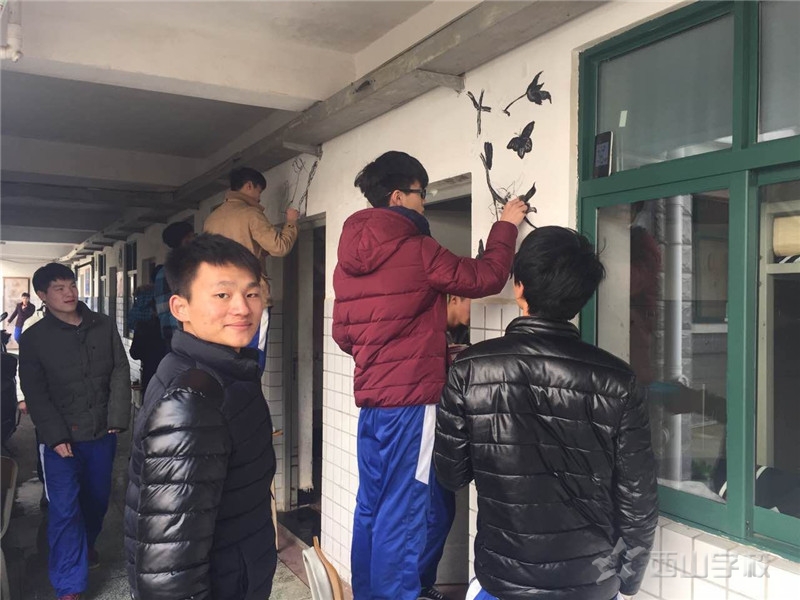为积极响应高中部首届宿舍文化节活动,创造温馨和谐的宿舍环境,近日,江西省西山学校高中部高三(9)班男生利用课余时间,为单调的宿舍走廊增添了一抹抹色彩。