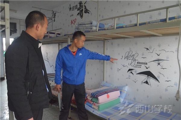 宿舍不仅是住的地方,也是一个文化聚合,为了给同学们营造一个和谐、温馨的宿舍文化氛围,进一步深化校园文化建设,2017年3月10日下午,江西省西山学校高中部政教处组织各年级主任对各班级宿舍文化墙进行了评比。高中部副校长崔东战,政教处主任万振华,高一年级主任李建国,副主任杨幸福,高二年级主任赖文新,代理副主任张海鹏,高三年级主任陈秀萍,副主任欧阳高亮,女生负责人柳真真以及部分教练分成小组对各个班级的宿舍文化、卫生、安全等方面进行了观摩、评比、打分。