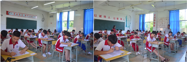 江西省西山学校高中部2017-2018学年度第二学期期末考试于6月27日拉开序幕。本次考试采取单人单桌的方式,考场秩序井然,每个考场按高考标准配备两名监考教师,以保证考试成绩真实有效。据悉,此次期末考试试卷由高中部自主命题。