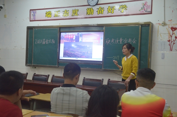 为了进一步强化教学管理,不断提高教学质量,2019年11月4日晚上,西山学校高中部召开高三金太阳联考质量分析会,会议由教务处副主任熊武辉主持,高中部校长王成益,副校长李孟清、崔东战出席,高三全体老师和教练参加会议。
