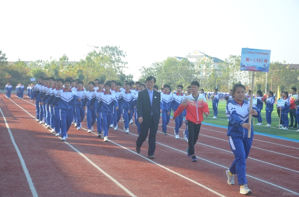 方阵队进场结束,奏唱国歌过后,高中部校长王成益致开幕词,他希望,全体运动员认真参加各项体育赛事,发挥自己最佳水平和技能;发扬奉献精神,做好后勤工作,发扬团队合作精神;全体裁判员要客观、公正地履行裁判员职责;各班正副班主任做好学生的组织工作,教育学生注意安全、爱护卫生、遵守秩序。